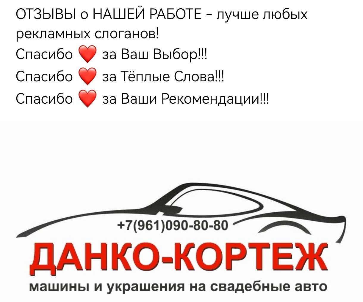 Правильный выбор уже сделали ТЫСЯЧИ МОЛОДОЖЕНОВ, обратившись именно к нам, ОТЗЫВЫ о НАШЕЙ РАБОТЕ - лучшее доказательство тому!во